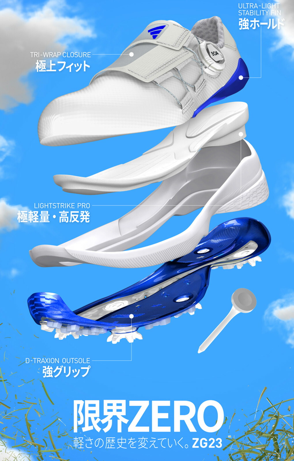 スパイクゴルフシューズパフォーマンスの概念を変えたZG21がフルモデルチェンジし、安定性・軽量性・グリップ力が前作から大きく向上したZG23。