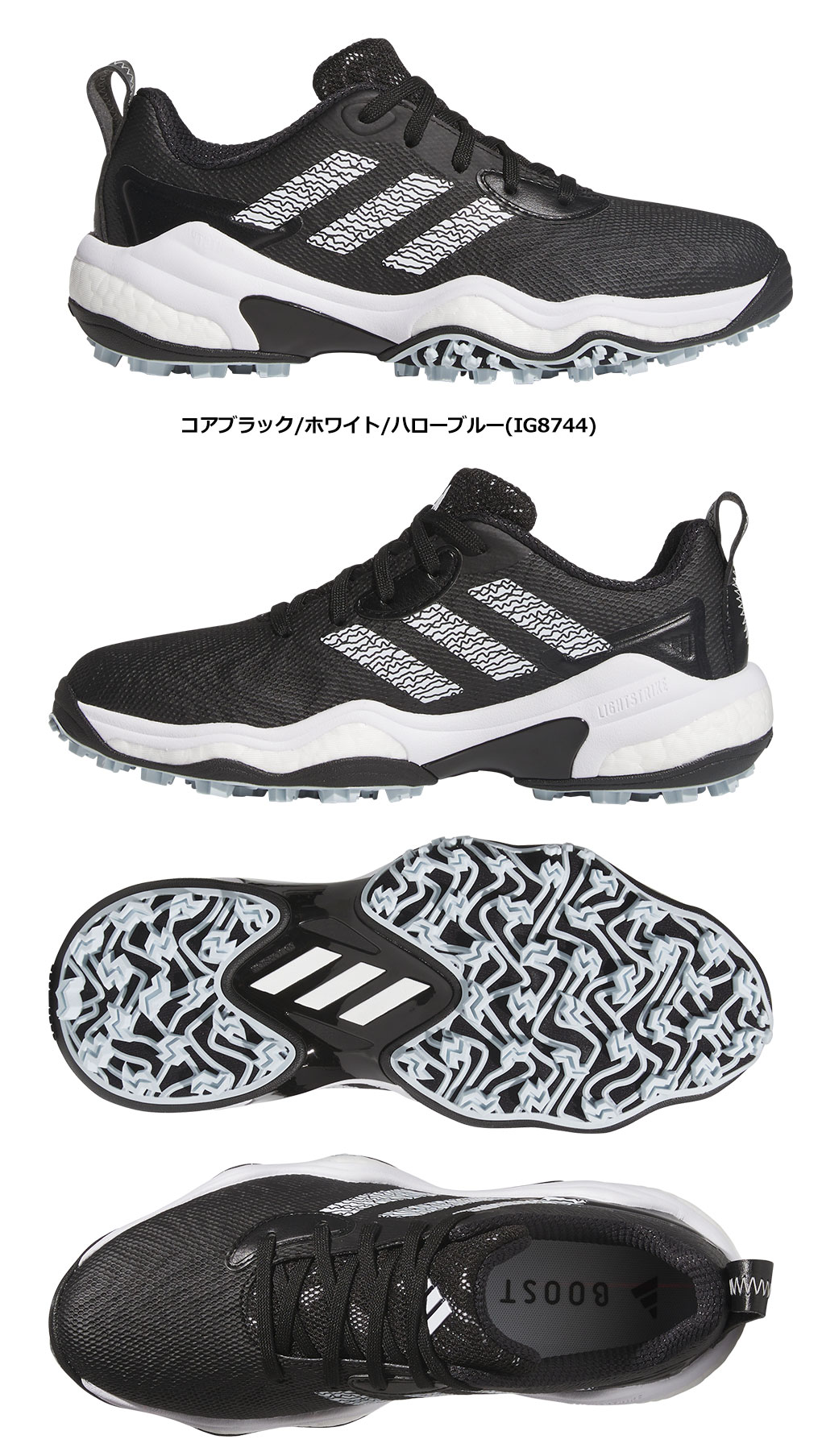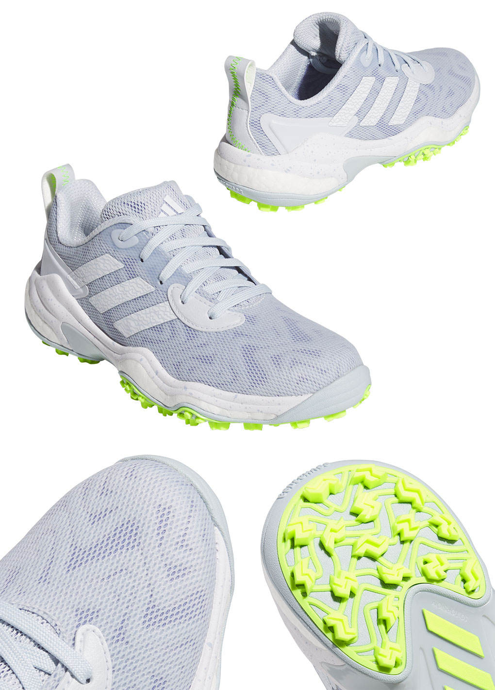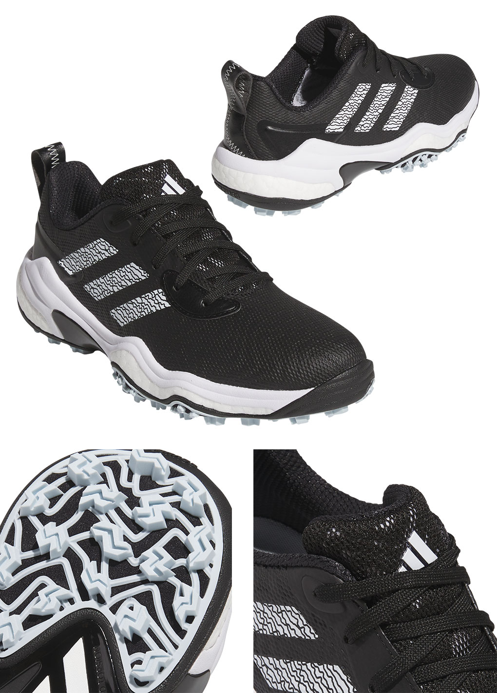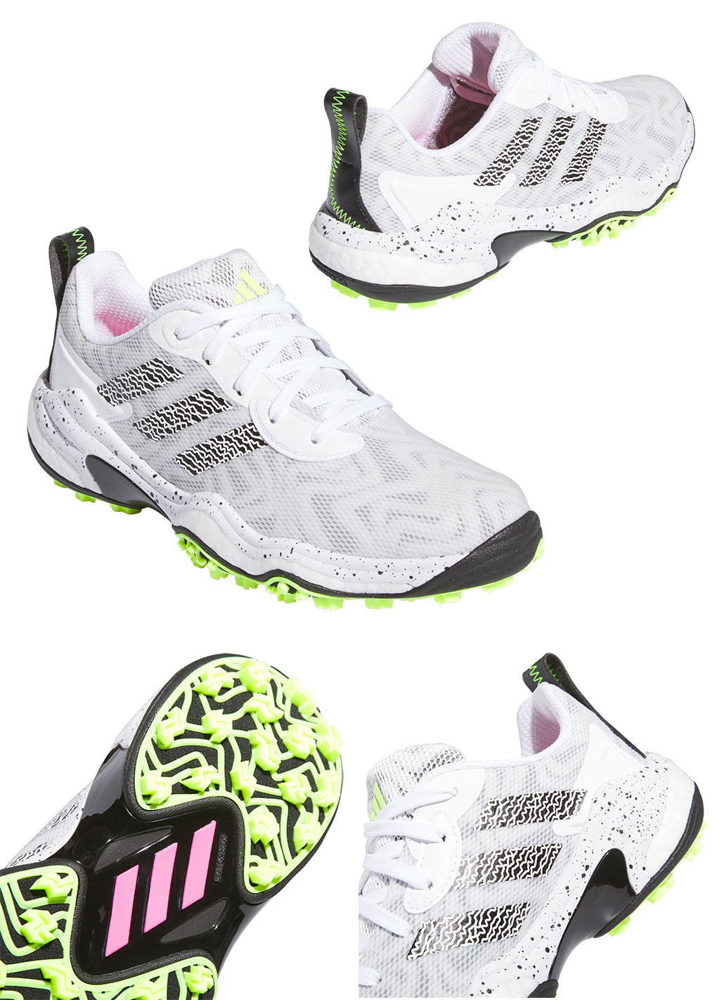 日本史上でもっとも売れたスパイクレスシューズ、コードカオスシリーズが2年ぶりにフルモデルチェンジ。adidas最高峰のツアースパイクレスパフォーマンスを追求して開発されたコードカオス25は前作のコードカオス22の性能全てが更にエレベートされている。最大の特徴は前作から更に約40%も向上したグリップ力。全く新しい、進化したTWISTGRIPは、前作アウトソールの一部からソール面の100%を覆う構造になり、ラグ(凹凸)の形状・個数・配置の全てを見直し、コードカオス特有の地面と足裏全面が一体化するような特性に加えて地面に鋭く噛み付く様なグリップ要素をプラス。アディダスゴルフ史上、トップクラスのグリップ性能をスパイクレスで実現。ミッドソールは、独自の高性能クッショニング素材であるBOOSTとシリーズ初搭載となるLIGHTSTRIKEの2種類ハイブリッドした構造を採用。従来コードカオスの快適なクッショニングをそのままに、スイング時には前作にないパワフルな反発と安定性の両方をもたらし、メリハリ感の強い性能を実現。