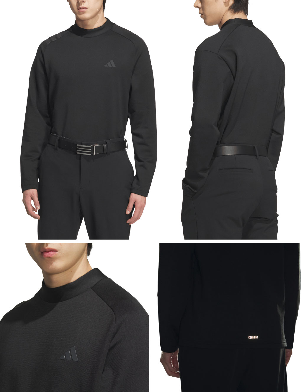 保温性の高いCOLD.RDY素材を使用したモックネックシャツ。肩にデザインされた大胆なスリーストライプが特徴的なアイテム。
