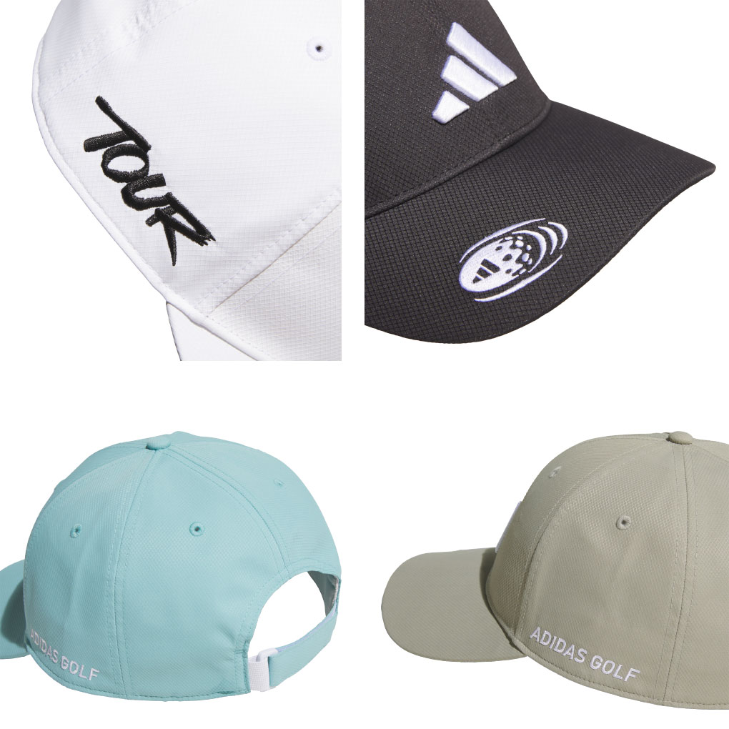 アスレチックなツアースタイルデザイン。サイドにADIDAS GOLFロゴとTOURロゴをデザイン。ドライで爽やかな感覚を維持してくれるAEROREADYスウェットバンドを備え、シーズンを通して活躍するアイテム。