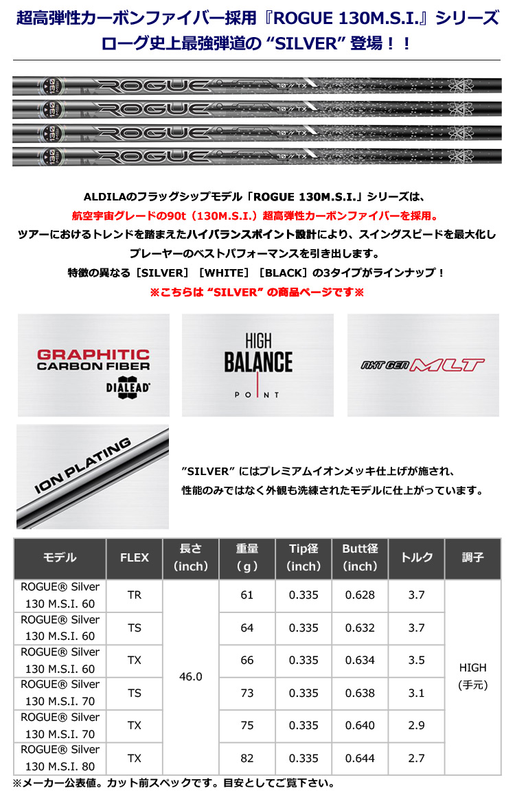 【ALDILA 2020 ROGUE SILVER 130 M.S.I.(アルディラ 2020モデル ローグ シルバー)】