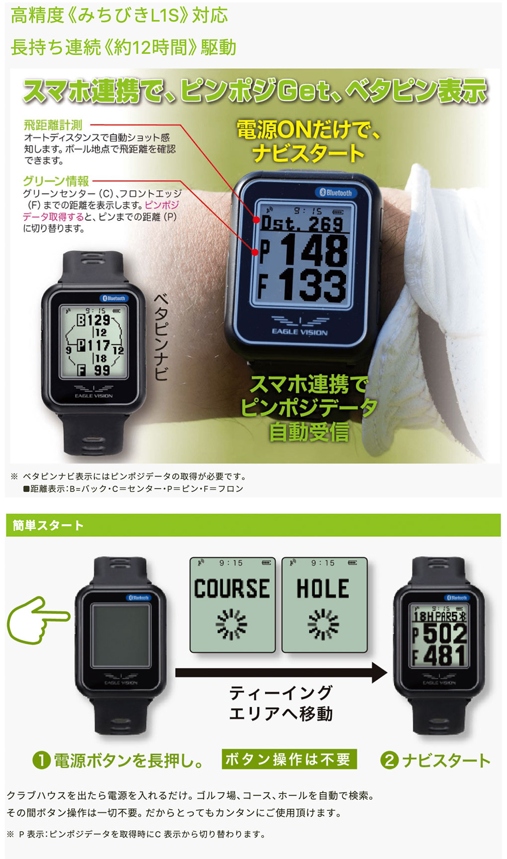 ゴルフナビ GPS 腕時計型 ラウンド用品