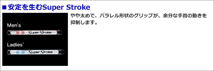 また、その重いグリップはSuperStroke社製で、やや太めのパラレル形状。