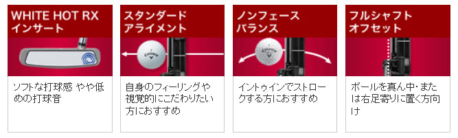 「WHITE HOT RXパター」は、従来のWHITE HOTインサートよりもソフトなフィーリングの新開発“WHITE HOT RXインサート”を搭載しています。