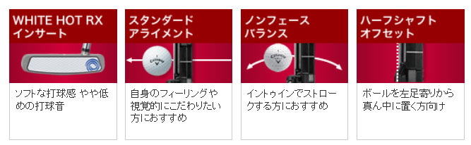 「WHITE HOT RXパター」は、従来のWHITE HOTインサートよりもソフトなフィーリングの新開発“WHITE HOT RXインサート”を搭載しています。