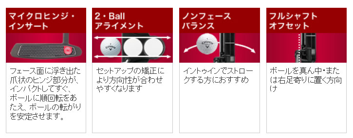 転がりが安定することで、距離感も方向性も向上する新開発「マイクロヒンジ・インサート」を搭載!すべてがハイレベルなパター!