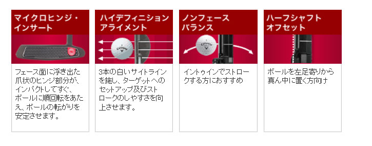 3本のラインと後方のボール型ディスクで、ストローク方向への意識を向上させ、安定したアドレスとストロークを生み出します。