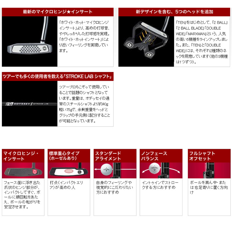 フェースには、打球感、打球音がホワイト・ホットインサートに限りなく近づいた、マイクロヒンジ★インサートを搭載し、カーボンとスチールの複合シャフト、STROKE LAB シャフトも、もちろん採用。