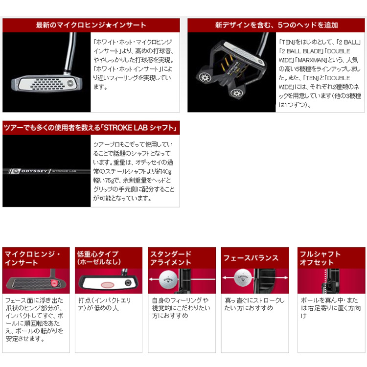 フェースには、打球感、打球音がホワイト・ホットインサートに限りなく近づいた、マイクロヒンジ★インサートを搭載し、カーボンとスチールの複合シャフト、STROKE LAB シャフトも、もちろん採用。