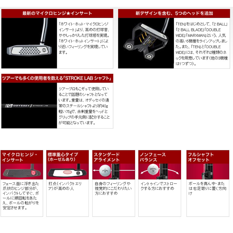 フェースには、打球感、打球音がホワイト・ホットインサートに限りなく近づいた、マイクロヒンジ★インサートを搭載し、カーボンとスチールの複合シャフト、STROKE LAB シャフトも、もちろん採用。