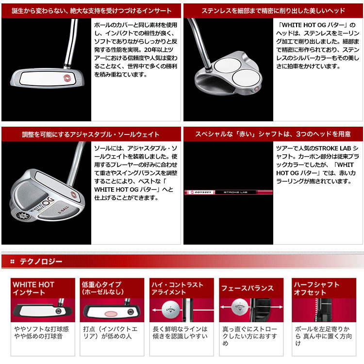 オデッセイ WHITE HOT OG ホワイト ホット OG 2-BALL パター ダブルベント ストロークラボシャフト装着 ODYSSEY 日本正規品 2021年モデル