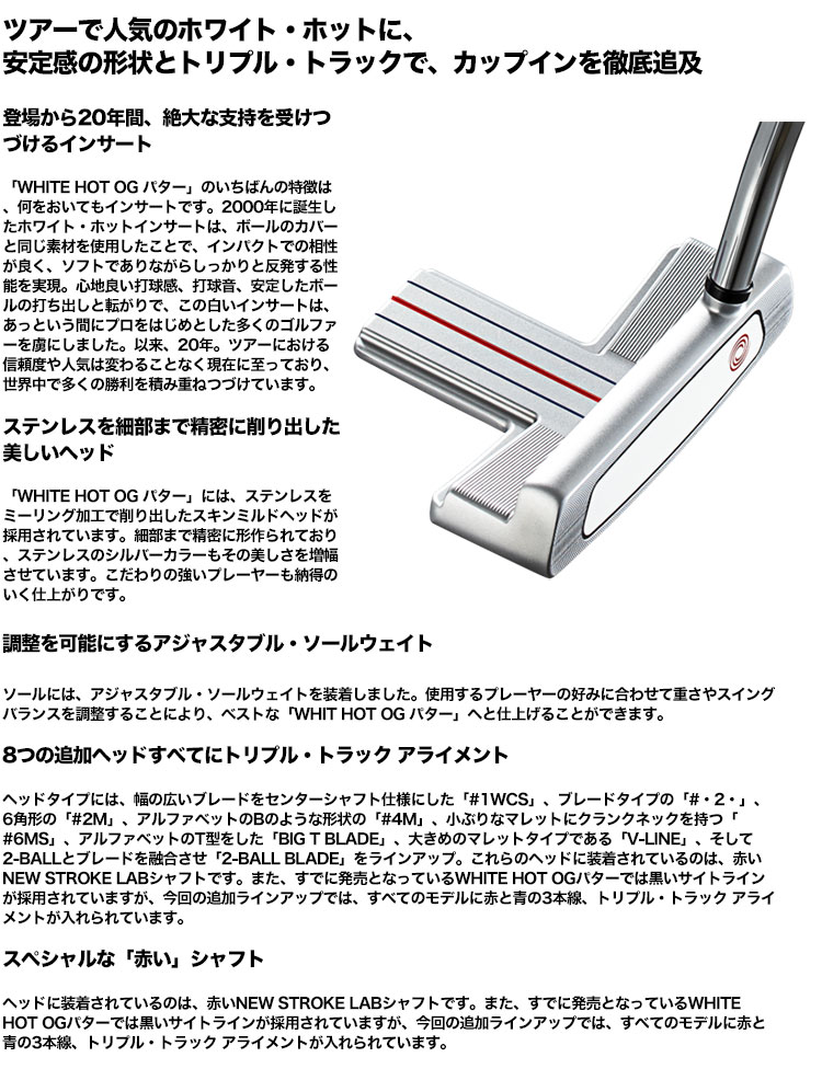 ツアーで人気のホワイト・ホットに、安定感の形状とトリプル・トラックで、カップインを徹底追及