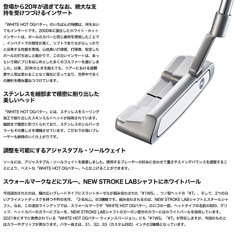 【毎日発送】【レディース】オデッセイ WHITE HOT OG #1WS パター レディース 右用 クランクホーゼル STROKE LABシャフト装着 日本正規品 2022年モデル