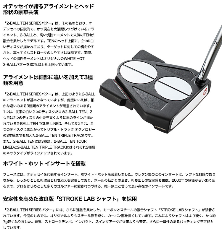 オデッセイ 2-BALL TEN TOUR LINED パター ダブルベンド STROKE LABシャフト装着 日本正規品 2022年モデル