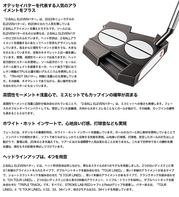 【毎日発送】オデッセイ 2-BALL ELEVEN S TOUR LINED パター メンズ 右用 32/33/34インチ ODYSSEY 日本正規品 2022年モデル