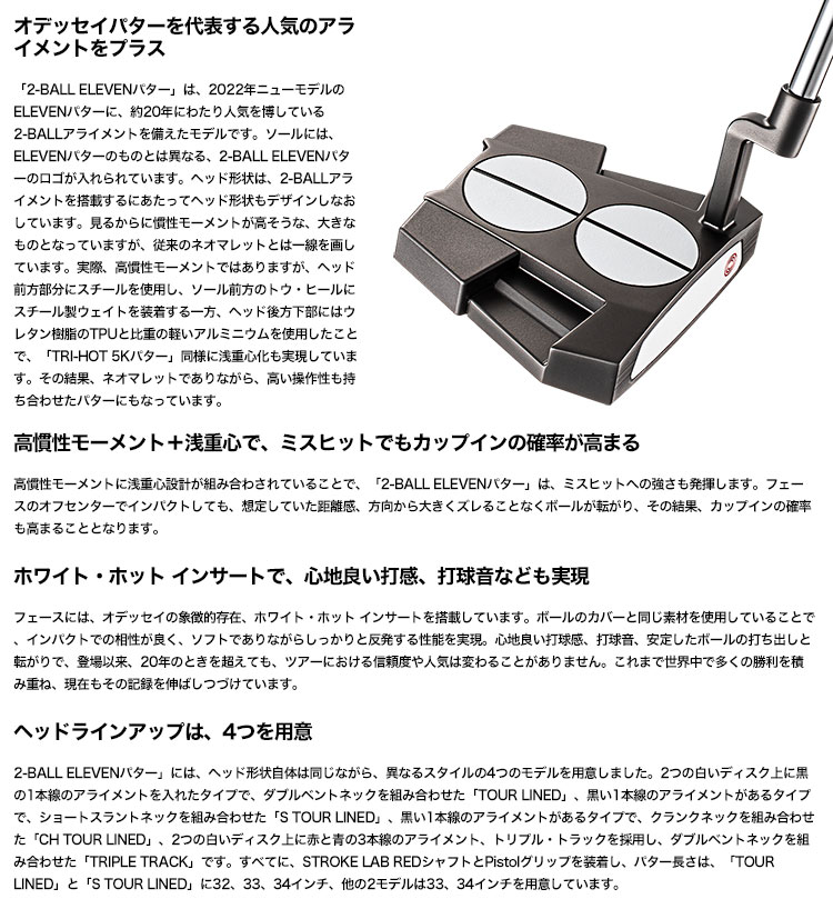 オデッセイ 2-BALL ELEVEN CH TOUR LINED パター メンズ 右用 33/34インチ ODYSSEY 日本正規品 2022年モデル