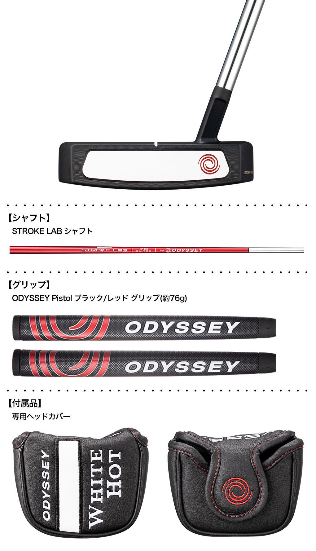 オデッセイ WHITE HOT VERSA パター メンズ 右用 STROKE LABシャフト装着 33インチ 34インチ ODYSSEY 日本正規品 2023年モデル
