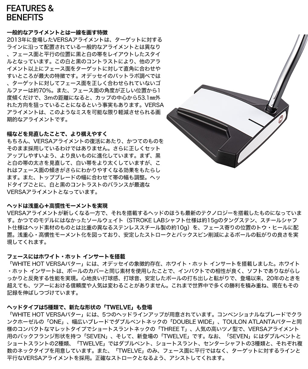 【毎日発送】オデッセイ WHITE HOT VERSA TWELVE パター メンズ 右用 STROKE LABシャフト装着 33インチ 34インチ ODYSSEY 日本正規品 2023年モデル