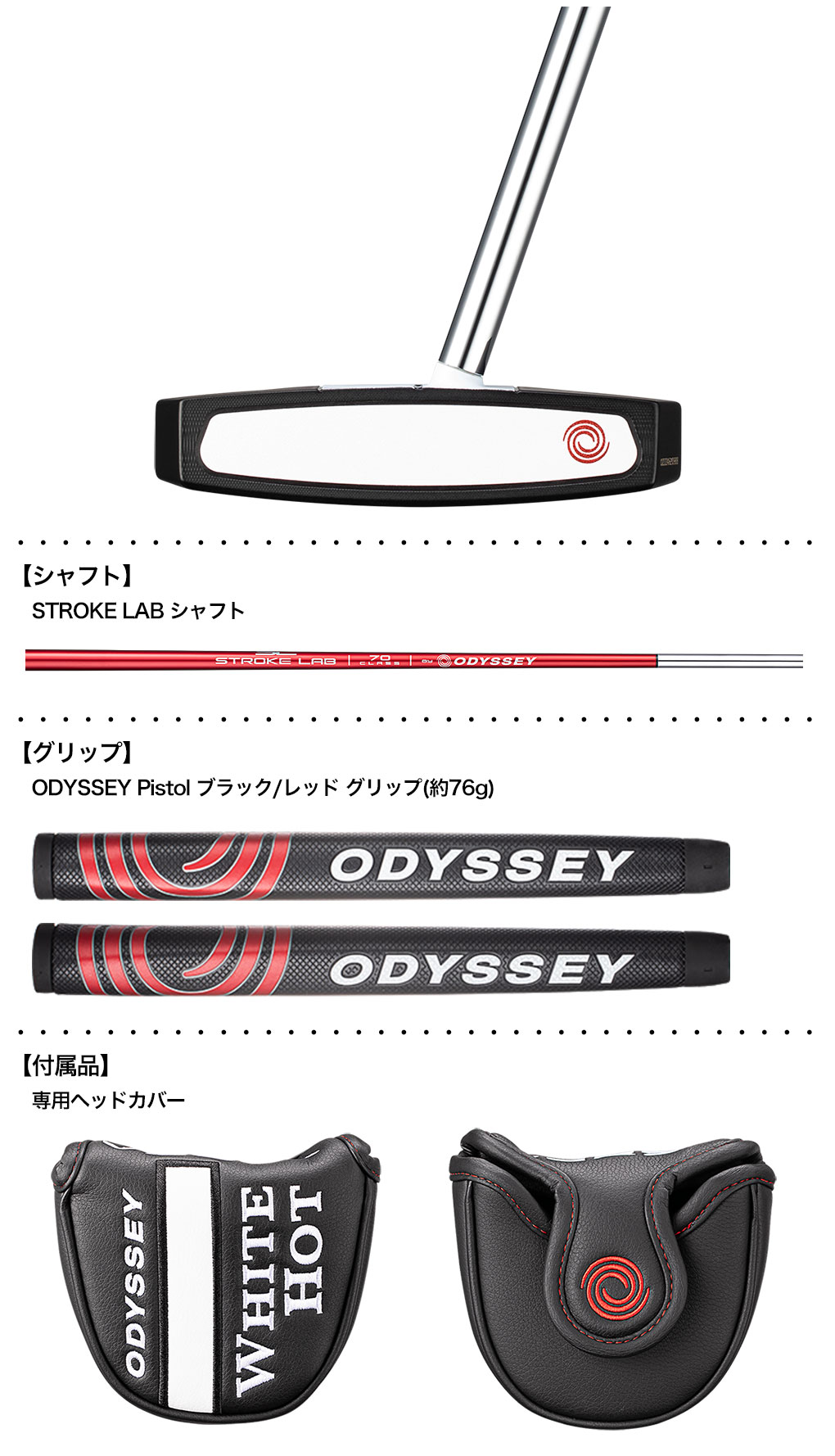 オデッセイ WHITE HOT VERSA パター メンズ 右用 STROKE LABシャフト装着 33インチ 34インチ ODYSSEY 日本正規品 2023年モデル