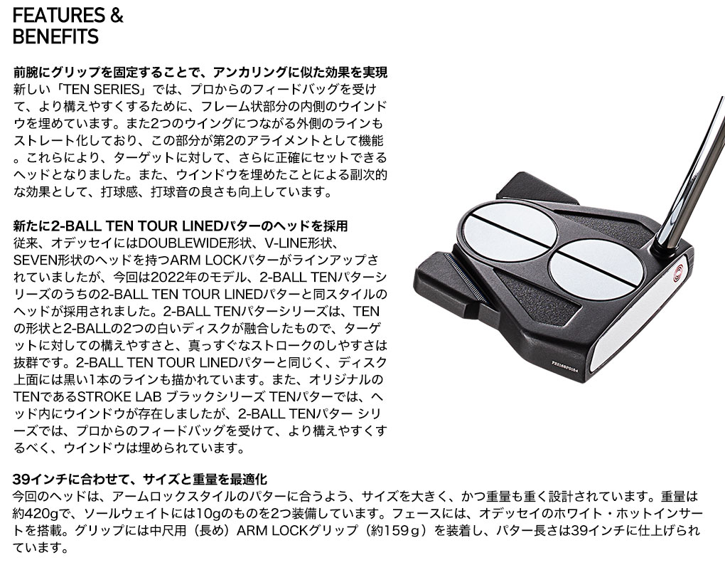 オデッセイ 2-BALL TEN ARM LOCK パター 中尺 メンズ 右用 39インチ ODYSSEY 日本正規品