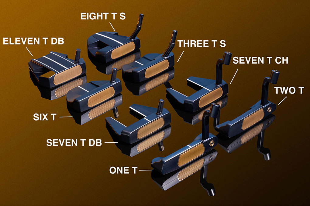 「Ai-ONE MILLEDパター」のラインアップは、全部で4種類。ブレードの「ONE T」「TWO T」、マレットの「THREE T S」「SIX T」、ツノ型のヘッドにダブルベントネックの「SEVEN T DB」、ツノ型のヘッドにクランクホーゼルの「SEVEN T CH」、大型マレットの「EIGHT T S」「ELEVEN T」という顔ぶれとなっています。なお、名称についている「T」は、チタン(Titanium)のTを表しています。