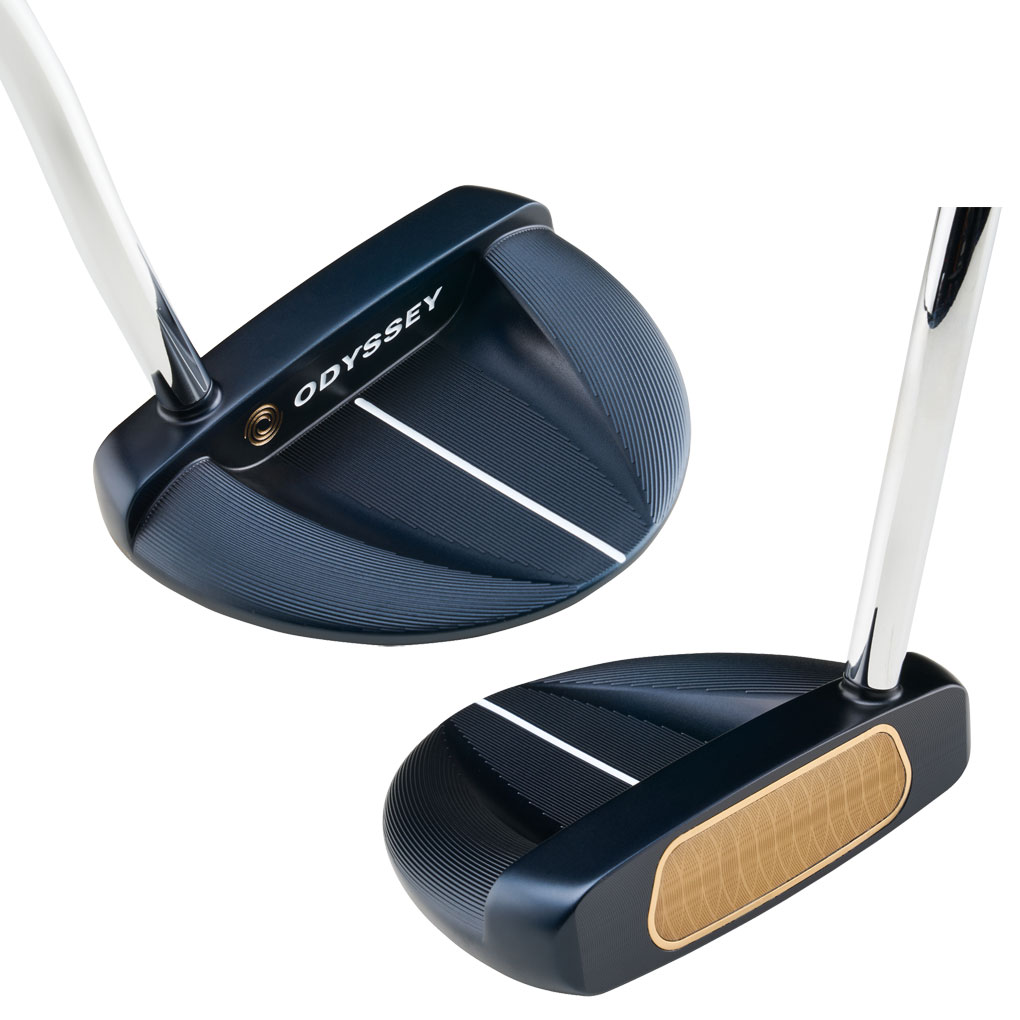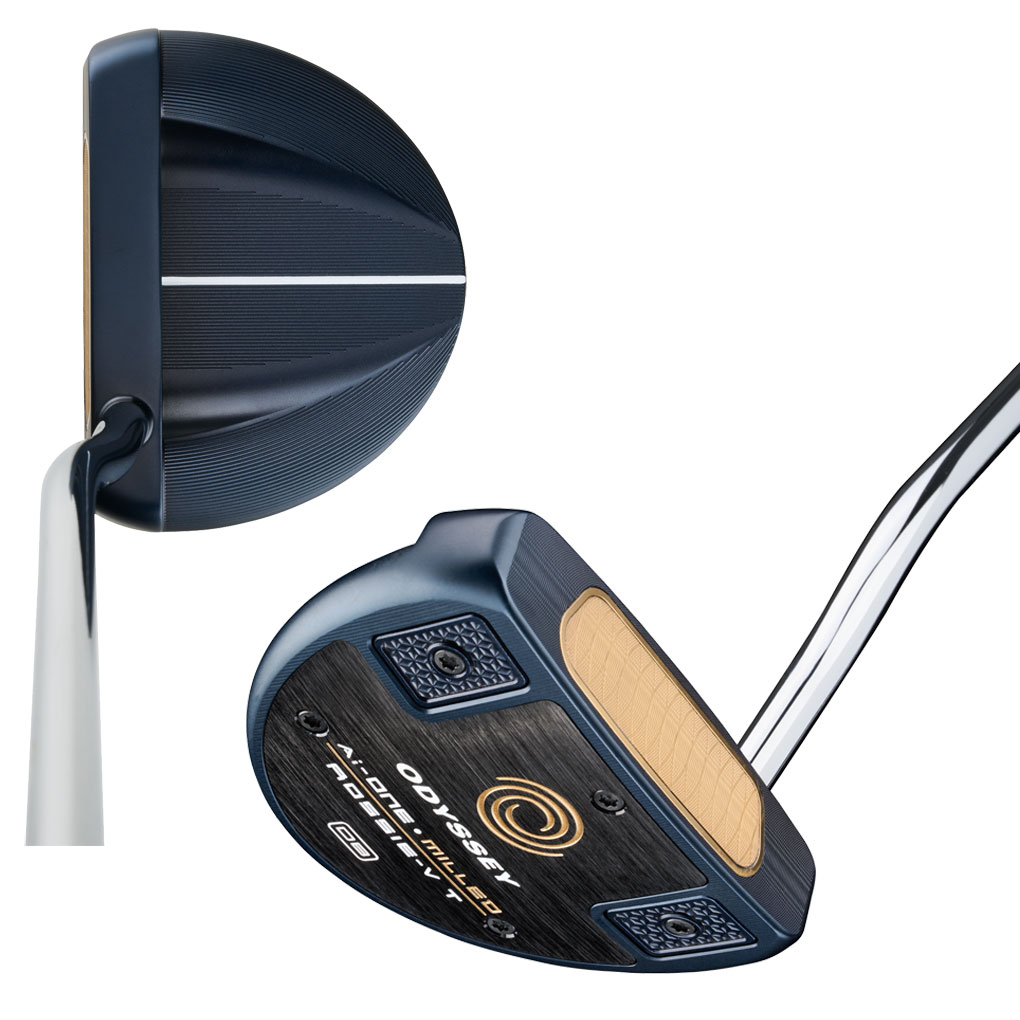 今回、追加されたのは計4種類。「ONE WIDE T」は、Ai-ONE MILLED TRI-BEAMパターで登場したDOUBLE WIDE Tと同様の幅の広いブレード形状で、バックフランジのトウとヒールには、従来のブレードタイプにあったステップがなく、滑らかな曲線を描いたスタイルになっています。マレットの「ROSSIE V T」は、オデッセイの人気モデルであるROSSIEとV-LINEを融合させたヘッドで、オデッセイの長い歴史のなかでも初登場の形状となります。「JAILBIRD MINI T」は、Ai-ONEパターでも人気となっているJAILBIRD MINIの形状にAi-ONEチタン・インサートを搭載したもので、ヘッド上面のVERSAアライメントは、インサートのブロンズゴールドに似たカラーとネイビーの2色で構成されています。最後の4つめは、言わずと知れた2-BALL形状の「2-BALL T」で、2つのアライメント用ディスクはブロンズゴールドで縁取られています。