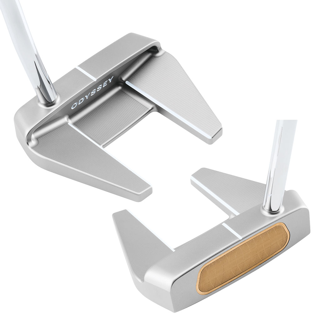 Ai-ONEパターの派生シリーズとしてAi-ONEパターと同じく、Ai-ONE MILLEDパターにも、カラー違いの「Ai-ONE MILLED SILVERパター」が製作されました。こちらもステンレススチールのボディに美しいシルバーを纏っていますが、Ai-ONE SILVERパターが明るいトーンなのに対し、やや淡いゴールドも混ざっているような、高級感を放つ色味となっているところが特徴と言えます。ミスヒットでも想定に近い転がりへと導くAi-ONEチタン・インサートやソールウェイトに採用されているブロンズゴールドにもマッチした色調です。ラインアップは、フランジ部分が直線を多用した形状となっているブレードタイプの「TWO T CH」、円形のフランジを持ったマレットタイプの「SIX T DB」、そして、人気の高いツノ型をした「SEVEN T DB」の3種類となっており、すべてにスチール製のSTROKE LAB 90シャフトを装着。パター長さは、34インチでの展開となっています。