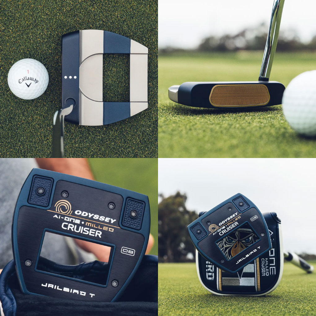 「Ai-ONE MILLED CRUISERパター」は、ストロークの安定感をアップさせるべく、Ai-ONE MILLEDパターのパター長さを38インチに延長し、長さが17インチで約83gのグリップを装着したモデルです。ヘッドタイプは計3種類で、幅の広いブレード形状で、バックフランジのトウとヒールが滑らかな曲線を描いている「ONE WIDE T CH」、ツアーでも人気の高い形状の「JAILBIRD T DB」、JAILBIRDのアライメントを飛球線方向に傾けたタイプの「JAILBIRD VERSA90 T DB」というラインアップとなっています。