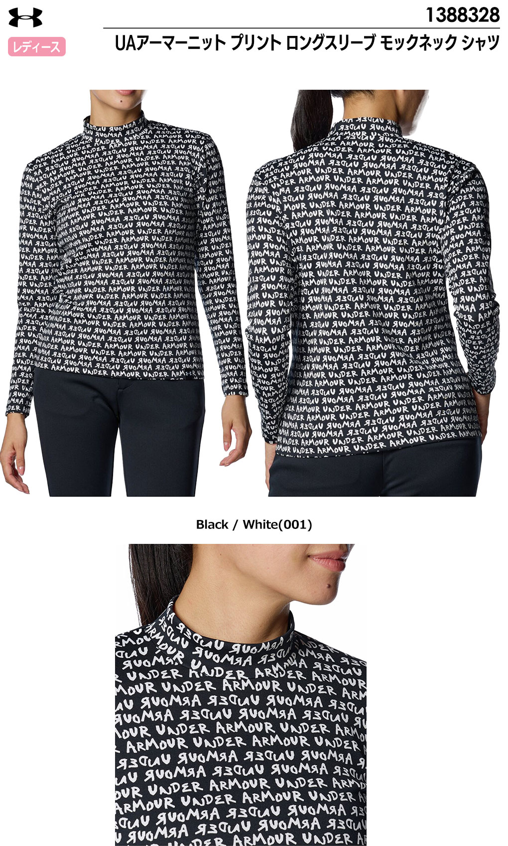 アンダーアーマー UAアーマーニット プリント ロングスリーブ モックネック シャツ 1388328 レディース UNDER ARMOUR 2024秋冬モデル 日本正規品 ゴルフウェア
