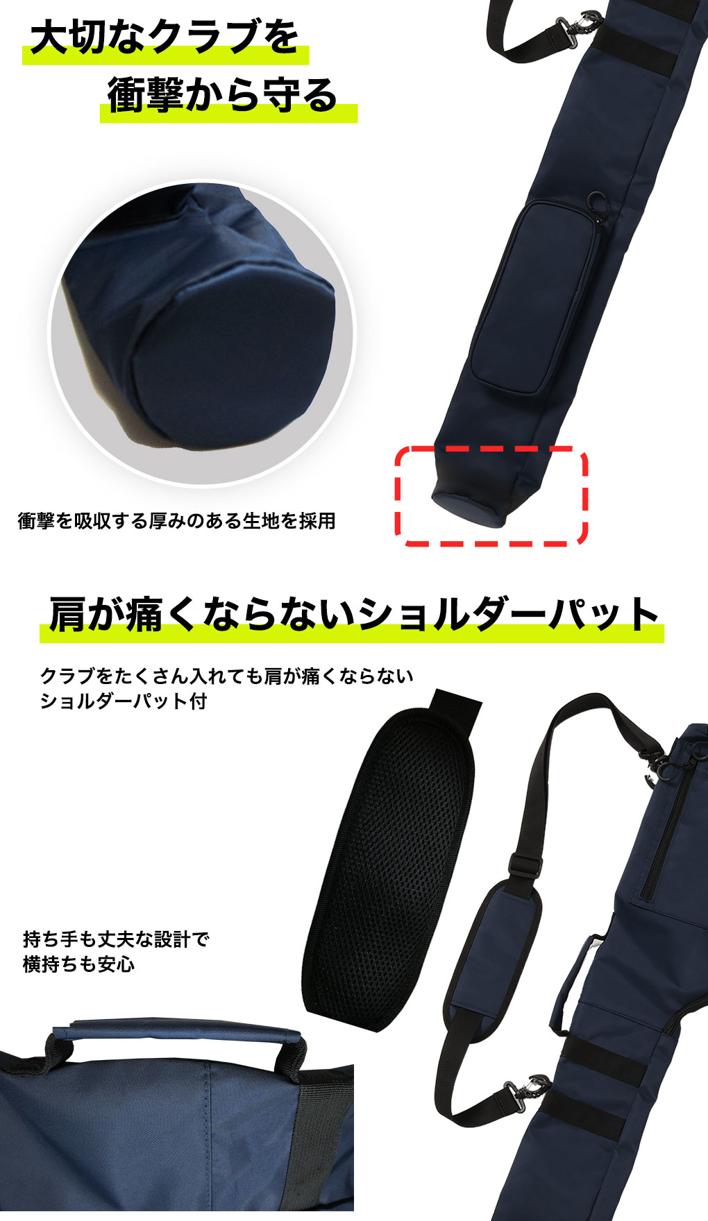 超軽量なのに大容量(クラブ8本以上収納可能)なショルダータイプのソフトクラブケース。