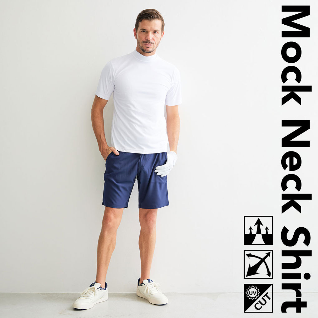 Tシャツのような気軽さと、モックネックのきちんと感を両立し、ゴルフ場のマナーも問題なし。