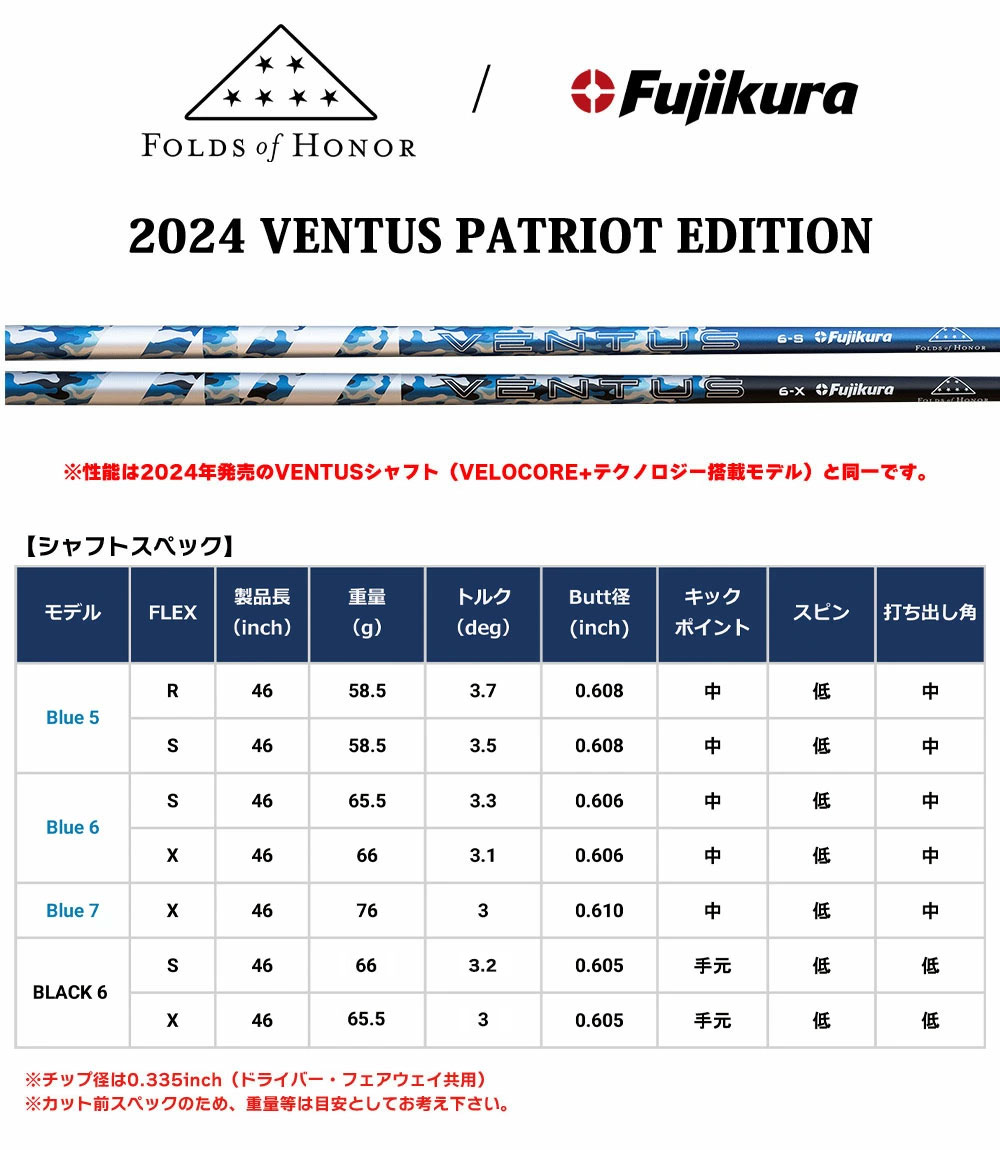 スリーブ装着 フジクラ 2024 VENTUS PATRIOT EDITION VELOCORE+ ベンタス パトリオットエディション ベロコアプラス 日本未発売 USA直輸入品 数量限定 ドライバー用 フェアウェイ用 シャフト スリーブ付きシャフト【単品購入不可】