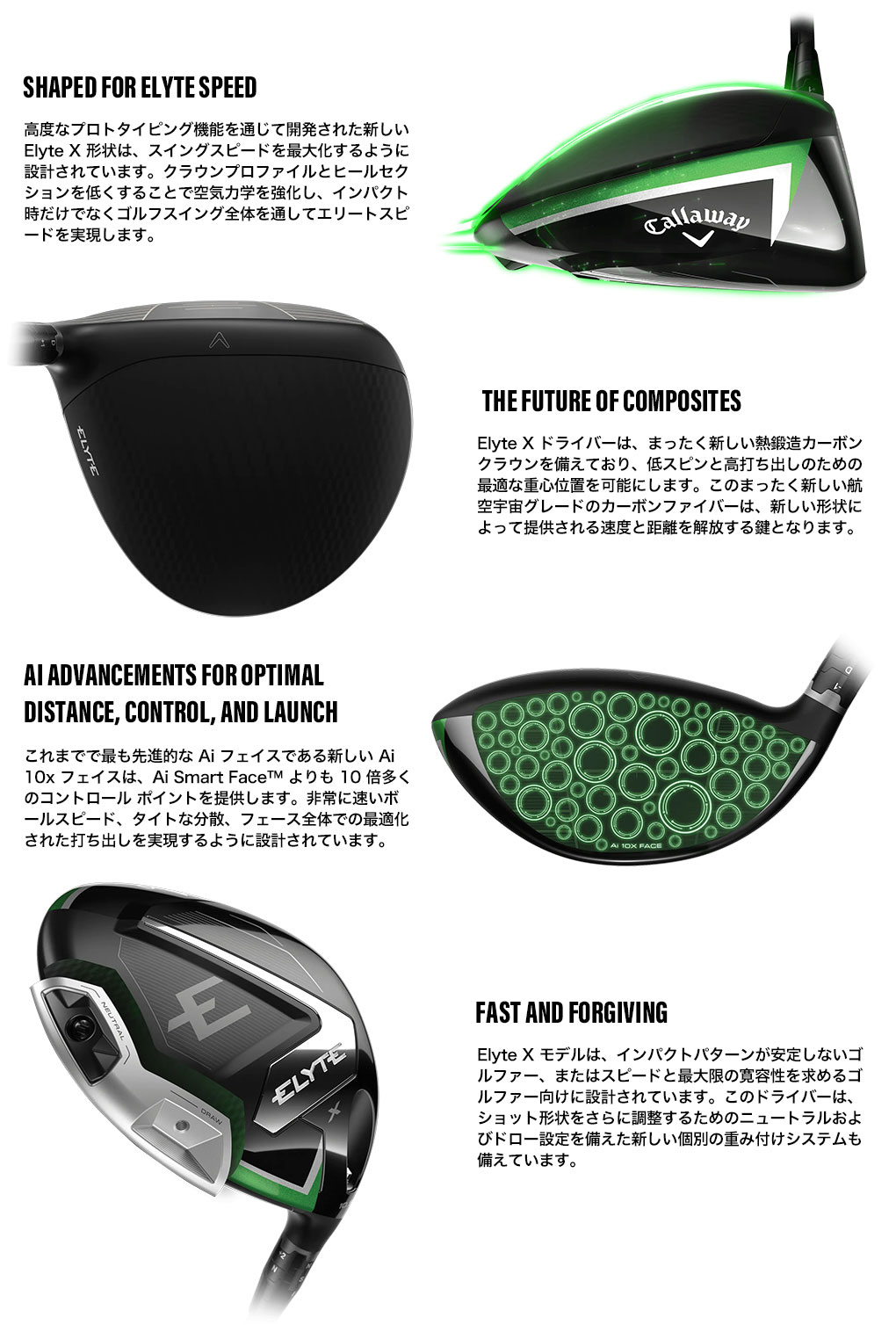 わずかなドローを促進する、速くて寛容なドライバーを探しているゴルファーにとって、Elyte X ドライバーは優れた飛距離と最大限の寛容性を提供します。