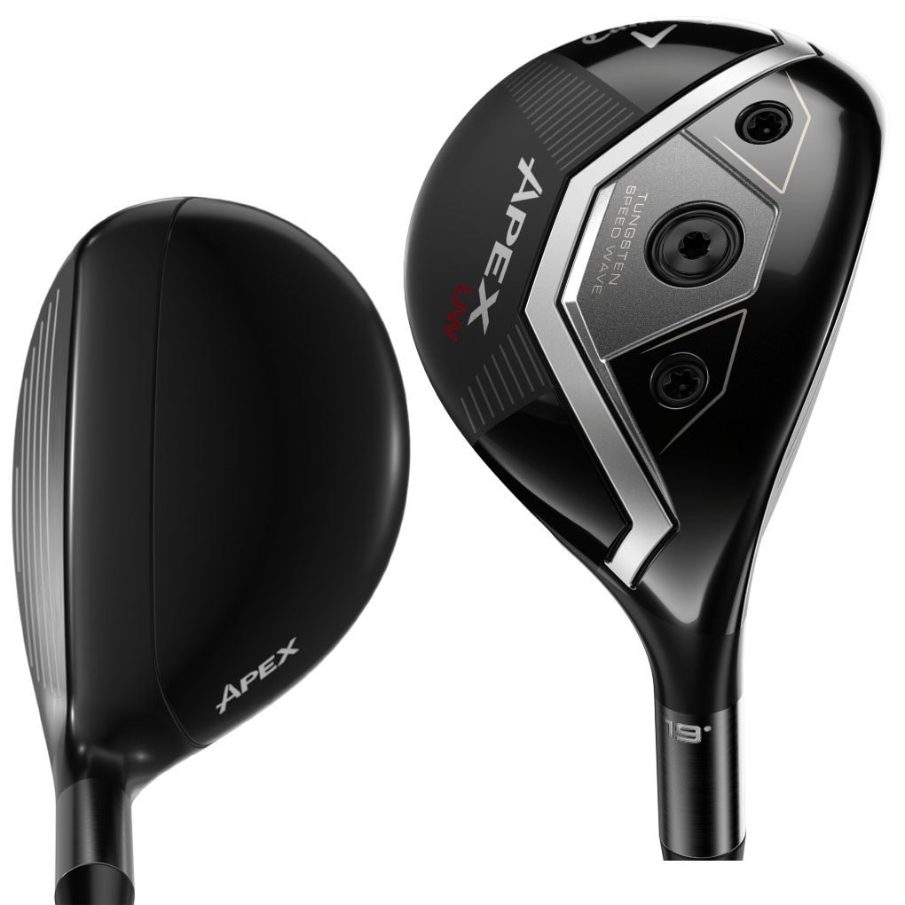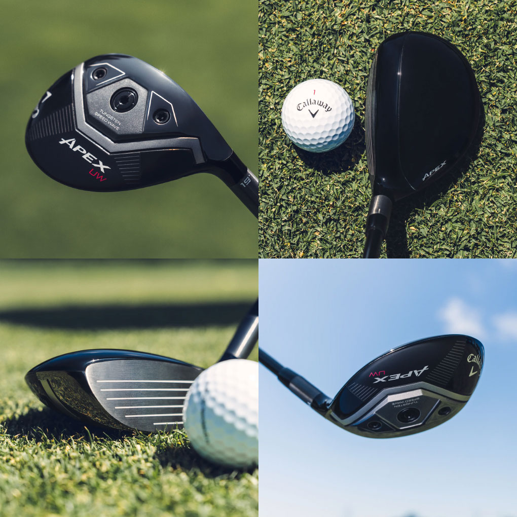 フェアウェイウッドとユーティリティの利点を合わせ持つ「APEX UW」が、2023年モデルから約2年を経てのリニューアルとなりました。最新バージョンでは、現在も多くのプロに愛用されている初代(2022年1月発売)のシェイプとステップ・ソールデザインを復活させながら、随所にブラッシュアップも敢行しています。フェースには、Ai 10x FACEを開発した技術を踏襲しつつ、今作に合わせた仕様となっているAi APEX FACEを導入。ヘッド内にはELYTEシリーズのフェアウェイウッドで登場したタングステン・スピードウェーブも搭載し、スキルレベルの高いプレーヤーが好む弾道、スピン量、コントロール性を追求しています。ロフトは、17度、19度、21度、23度の4種類をラインアップ。クラブ長さでは、新たに0.75インチの差をつける設定としており、より飛距離の違いが出るようにもなっています。