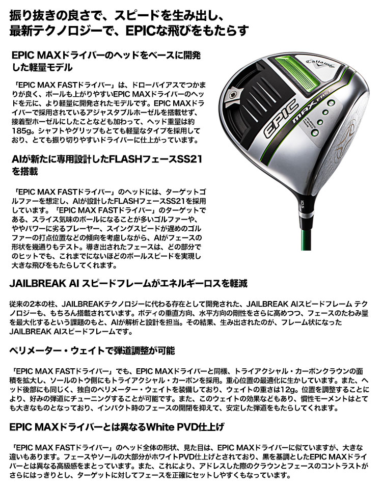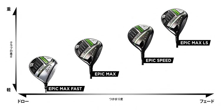 2021年EPICシリーズが、さらに幅広く強力な布陣となりました。新登場の「EPIC MAX FASTドライバー」は、EPIC MAXドライバーをベースに新開発された軽量モデル。