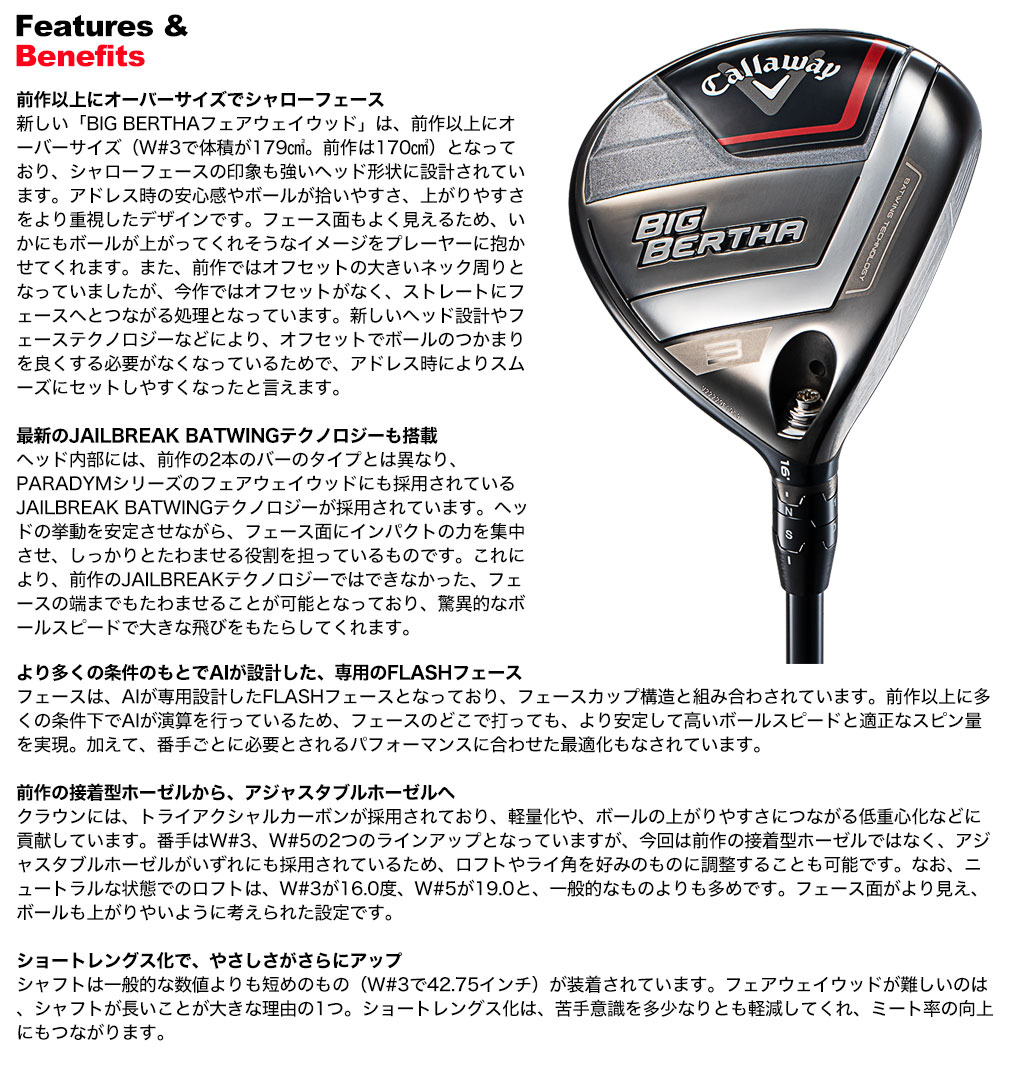 フェアウェイウッド ゴルフクラブ ビッグバーサ Callaway 2023年7月14日発売