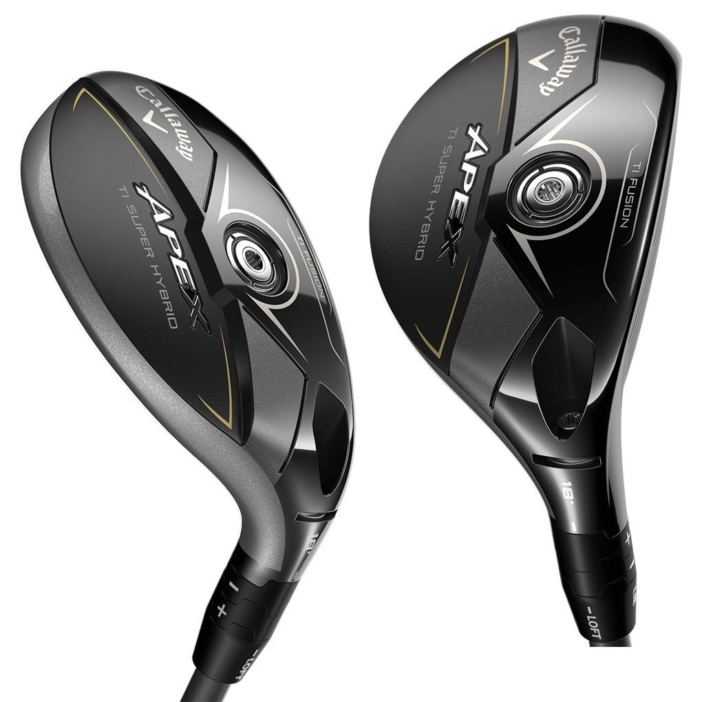 2019年から始まったSUPER HYBRIDという名前のついたこれまでのモデルは、どちらかといえば、大きなヘッドによる安心感ややさしさをイメージさせるものでしたが、新登場の「APEX Ti SUPER HYBRID」は少し性格が異なります。チタン製フェースの反発力を活かして、より飛距離性能を注力したタイプとなっており、ELYTEシリーズで言えば、ELYTE TITANIUMフェアウェイウッドのような存在です。導入されている専用のAi APEX FACEは、ミスヒットに対する強さや着弾範囲の狭さもさることながら、前へ前へと突き進んでいく弾道を実現することに、より重きを置いて設計。長めの設定となっているクラブ長さも、飛びのパフォーマンスに大きく貢献しています。APEX UW同様にステップ・ソールデザインが採用されているため、ラフなどでも抜群の抜けの良さを発揮。ロフトは2Hから5Hまでの4種類で、全番手に最新のニューオプティフィット4と呼ばれるアジャスタブルホーゼルを搭載しています。