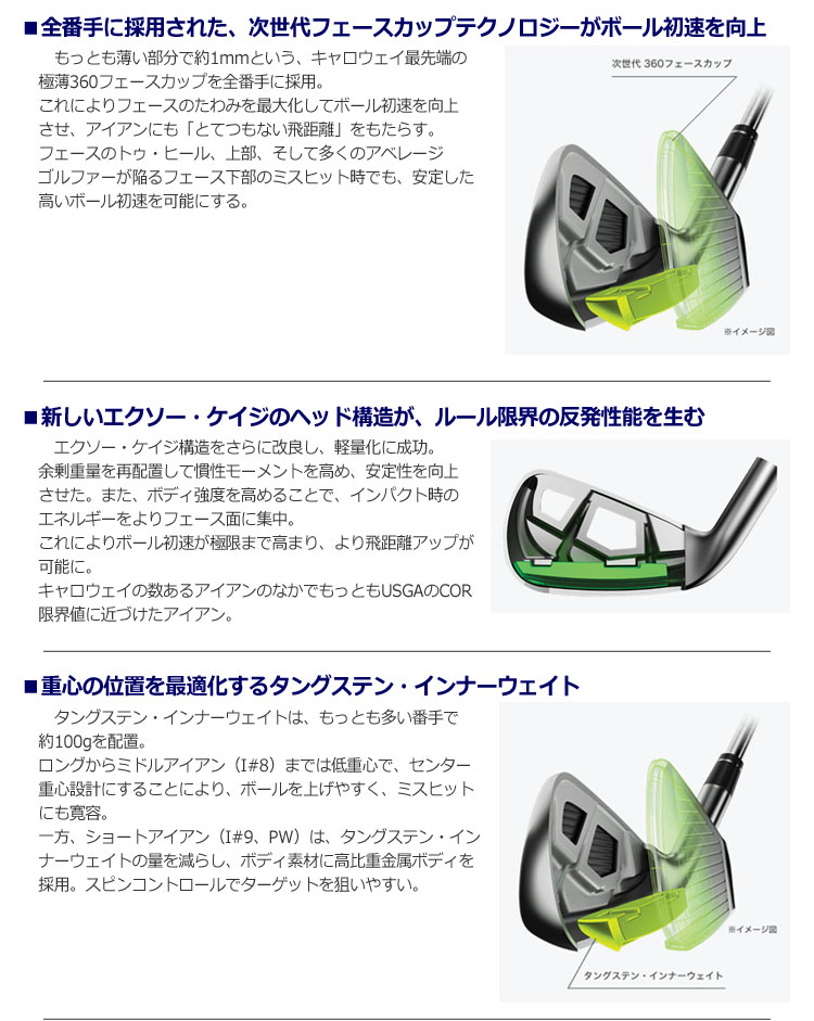 “アイアンを超えた”とてつもない飛距離をももたらすモデルとなっています。