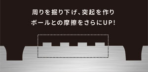 従来と発想を逆転させて、溝と溝の間をCNCミルドで凸状にすることにより、摩擦係数を向上させ、かつてないほどのスピンを生み出します。