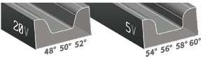 また、48~52°には20Vグルーブ、54~60°には、さらに鋭角な5Vグルーブを採用。