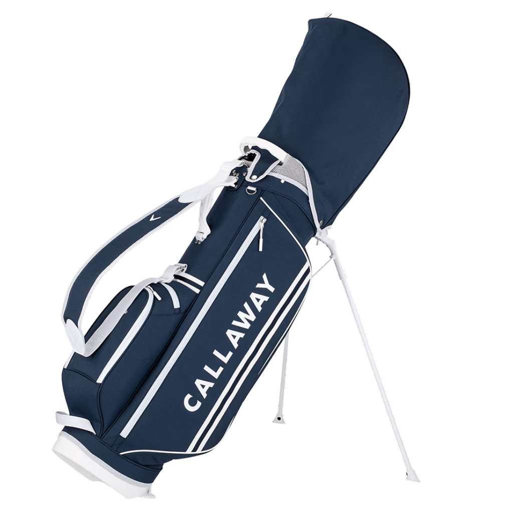 発色が良く軽やかなポリエステル生地にラインテープのアクセント。横文字でCALLAWAYの文字をプリントしたカジュアルテイスト軽量スタンドバッグ。