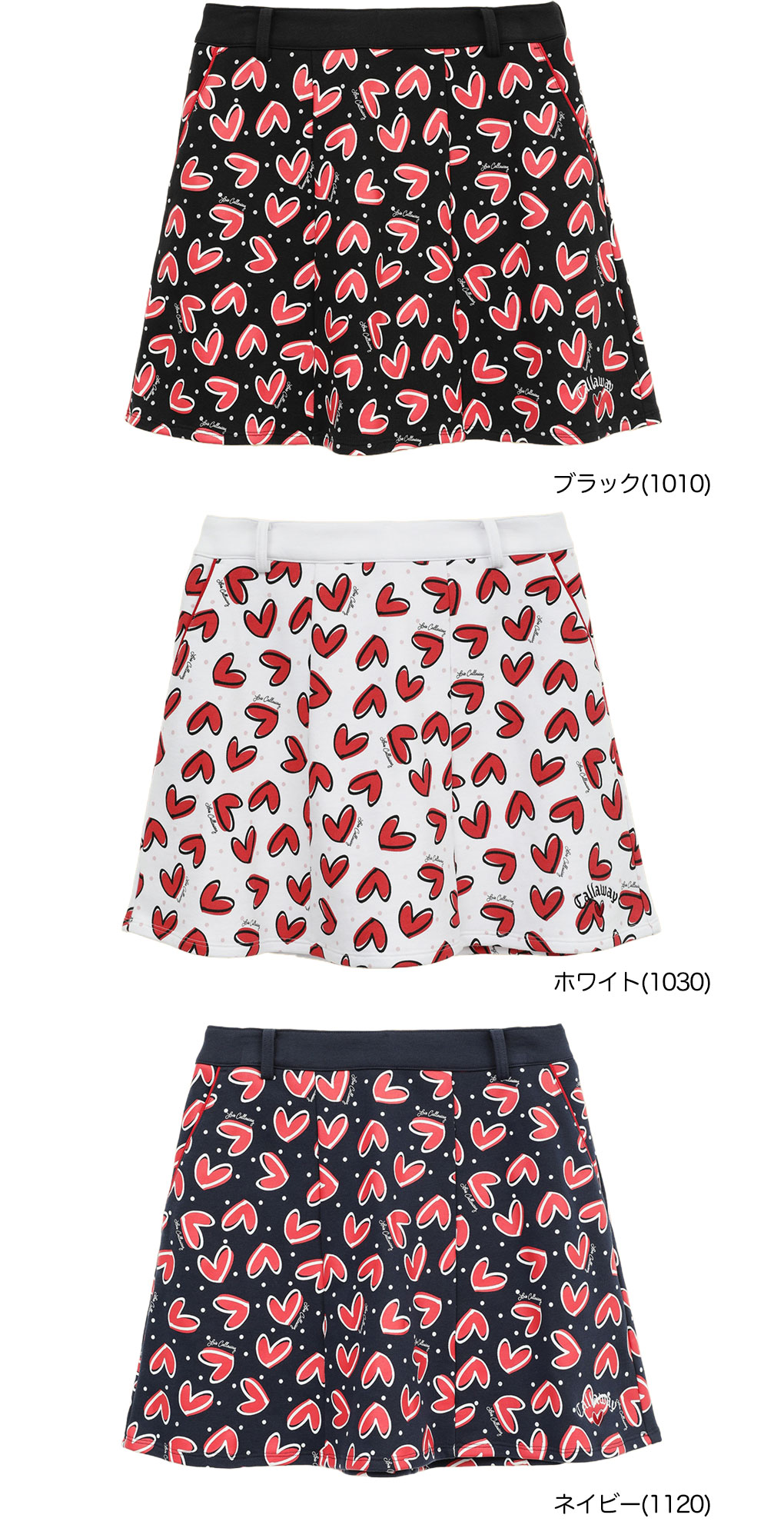 カジュアルな裏毛スウェット素材使用。LOVE Callaway ハートを総柄プリント。6枚はぎのフレアースカートは同柄とのセットアップもおすすめです。
