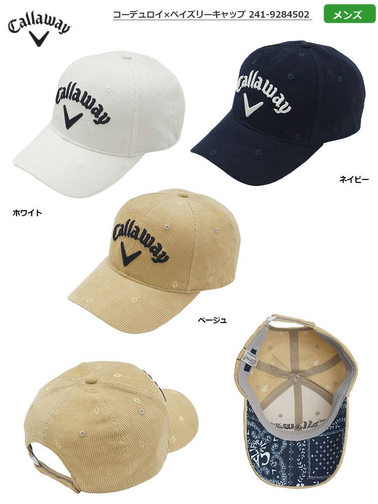 【毎日発送】キャロウェイ メンズ コーデュロイ×ペイズリーキャップ 241-9284502 ホワイト ネイビー ベージュ 日本正規品