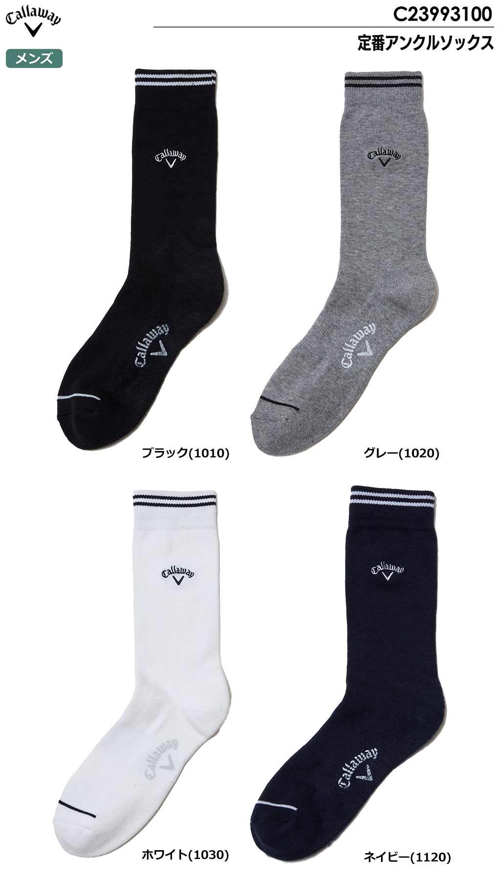 キャロウェイ 定番クルーソックス C23993101 メンズ 靴下 Callaway 2023秋冬モデル 日本正規品