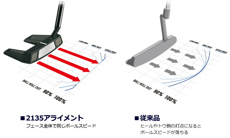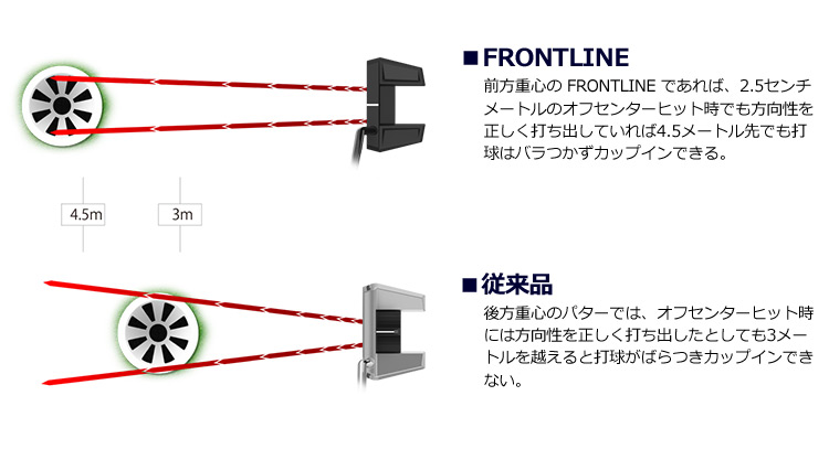 「前方重心」という新しい発想により、打点ミスに強く、直進性の高い安定したパッティングを実現!