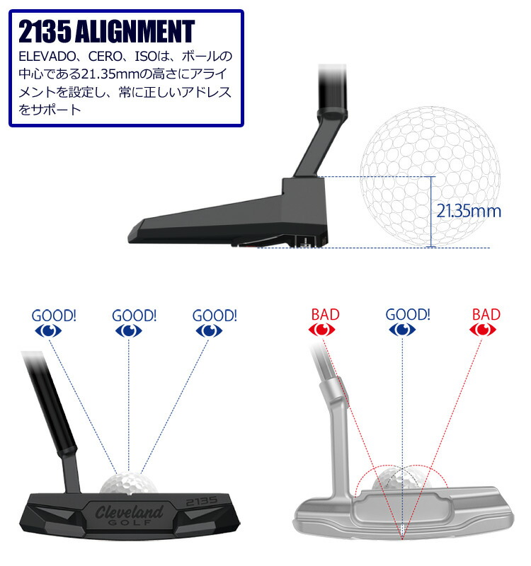 クリーブランドゴルフ独自の立体アライメントは多くのゴルファーが気付くことがないズレを自然に修正し、よりカップを正確に狙えるようにします。
