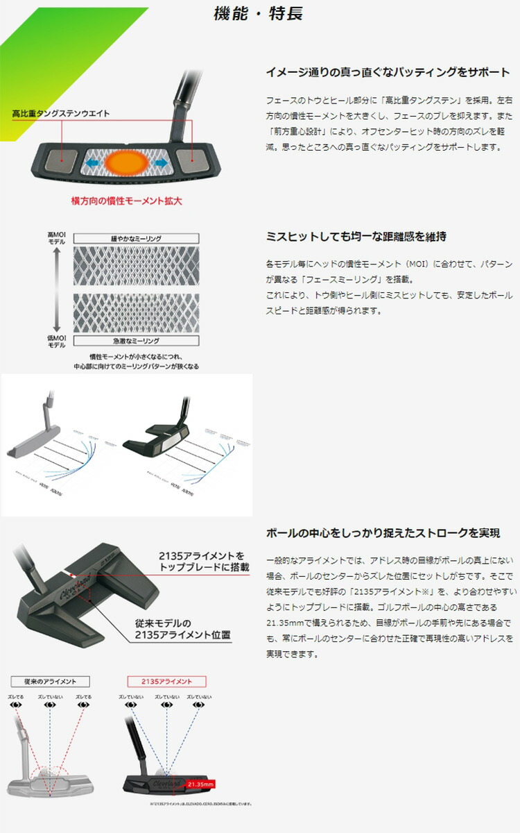 前方重心設計とクリーブランド独自のアライメント、 フェースミーリングが真っ直ぐで正確なパッティングをサポート。