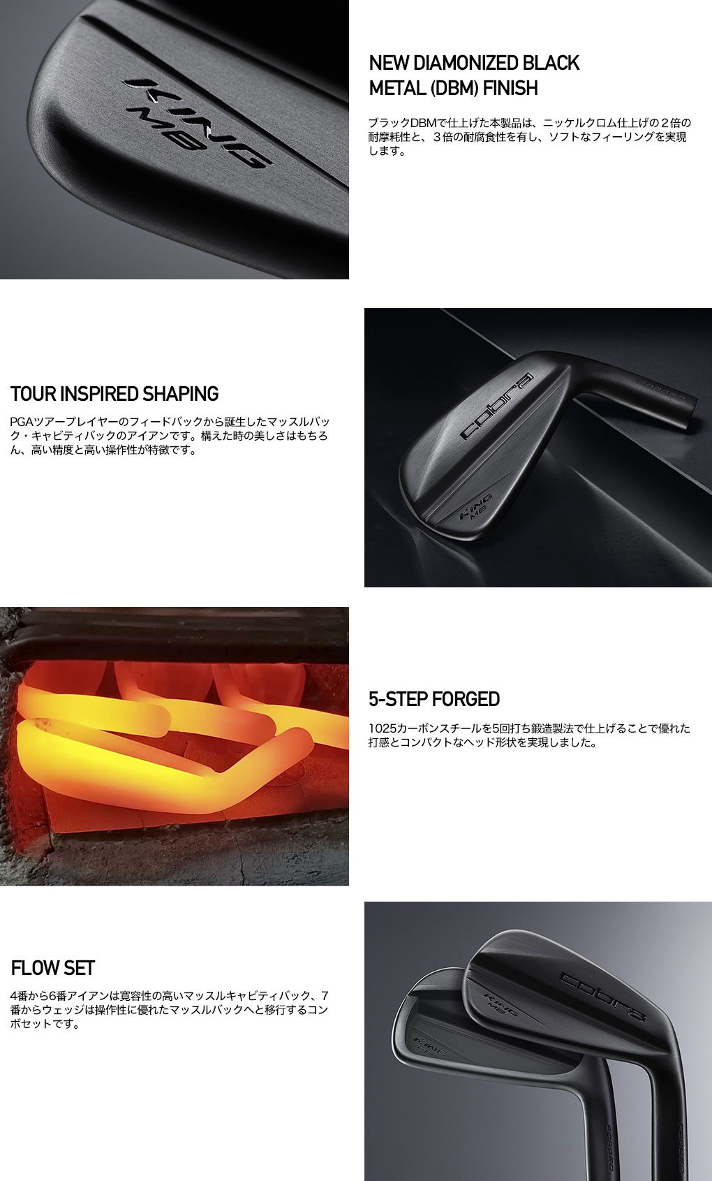 コブラ KING CB/MB Black Irons アイアン 7本セット(4I-PW) メンズ 左用 レフティー KBS $-Taper スチールシャフト装着 2024年モデル USA直輸入品 ゴルフクラブ