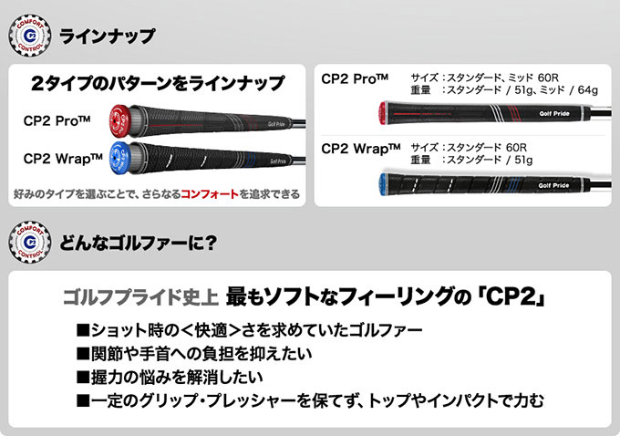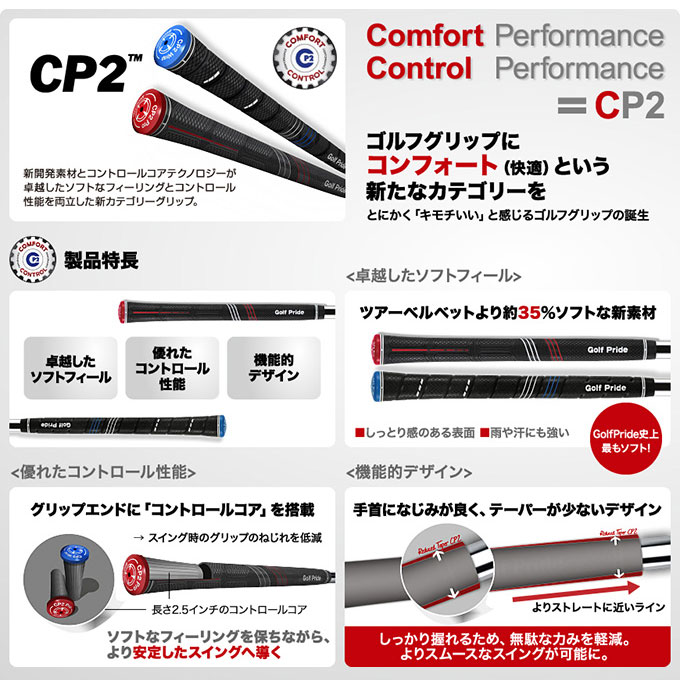 ゴルフプライド GOLF PRIDE CP2シリーズ グリップ [Pro(赤キャップ)/Wrap(青キャップ)、バックラインなし]