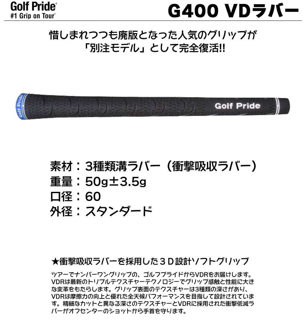 ゴルフプライド VDR-G400 VDラバー グリップ VDR-G400 スインググリップ 衝撃吸収ラバー 約50g 60口径 GOLF PRIDE GRIP ソフトグリップ 大人気モデルの復刻版